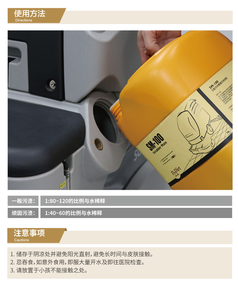 按照稀釋比例添加到洗地機清水箱使用即可,也可用于拖把拖地和毛巾抹擦清潔